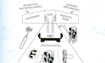 Although Antibiotics will help kill microorganisms in the nonossified tissues around the focus of infection and surgery will remove the macroscopic portions of dead, infected bone, HBO improves host responsiveness by making the environments more favourable to WBC oxidative killing, neovascularization, and resorption, of dead, infected bone (reproduced from Strauss 1987, by permission) K.K. Jain, The Textbook of Hyperbaric Medicine, 5th ed, pg 146